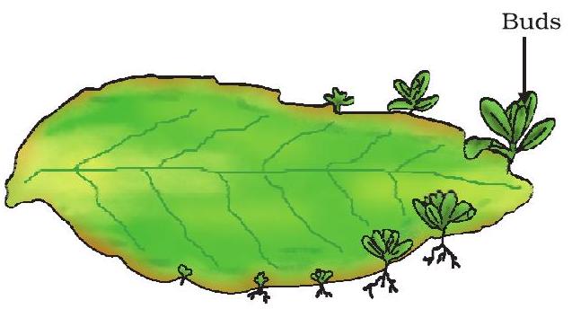 Similarly buds produced in the notches along the leaf margin of Bryophyllum fall on the soil and develop into new plants (Fig. 7.5).