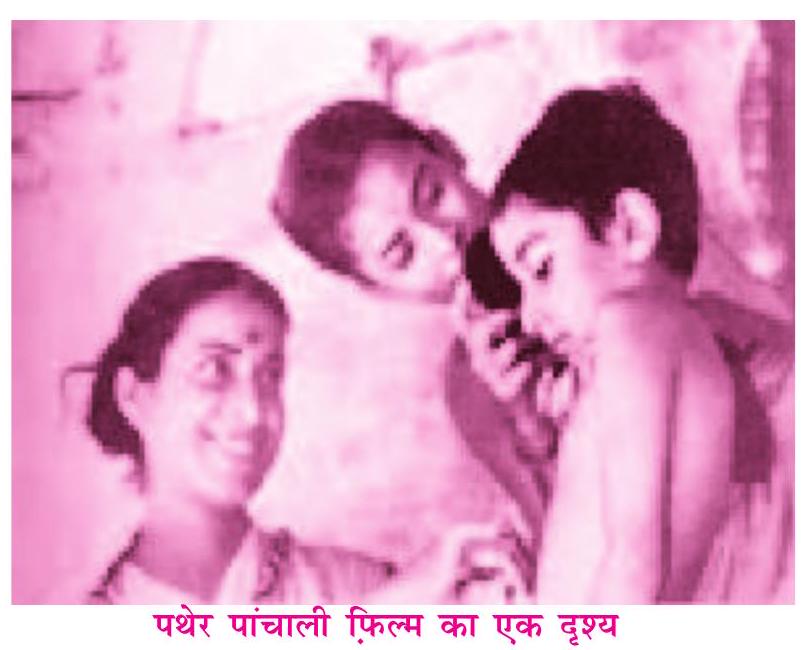 विज्ञापन देकर भी अपू की भूमिका के लिए सही तरह का लड़का न मिलने के कारण मैं तो बेहाल हो गया। आखिर एक दिन मेरी पत्नी छत से नीचे आकर मुझसे बोली, ‘पास वाले मकान की छत पर एक लड़का देखा, ज़रा उसे बुलाइए तो!’ आखिर हमारे पड़ोस के घर में रहने वाला लड़का सुबीर बनर्जी ही ‘पथेर पांचाली’ में ‘अपू’ बना। फ़िल्म का काम आगे भी ढाई साल चलने वाला है, इस बात का अंदाज़ा मुझे पहले नहीं था। इसलिए जैसे-जैसे दिन बीतने लगे, वैसे-वैसे मुझे डर लगने लगा। अपू और दुर्गा की भूमिका निभाने वाले बच्चे अगर ज़्यादा बड़े हो गए, तो फ़िल्म में वह दिखाई देगा! लेकिन मेरी खुश किस्मती से उस उम्र में बच्चे जितने बढ़ते हैं, उतने अपू और दुर्गा की भूमिका निभाने वाले बच्चे नहीं बढ़े। इंदिरा ठाकरुन की भूमिका निभाने वाली अस्सी साल उम्र की चुन्नीबाला देवी ढाई साल तक काम कर सकी, यह भी मेरे सौभाग्य की बात थी।