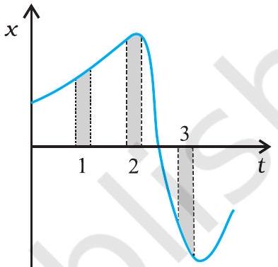 2.16 Figure 2.13 gives the $x-t$ plot of a particle executing one-dimensional simple harmonic motion. (You will learn about this motion in more detail in Chapter13). Give the signs of position, velocity and acceleration variables of the particle at t = 0.3 s, 1.2 s, – 1.2 s.