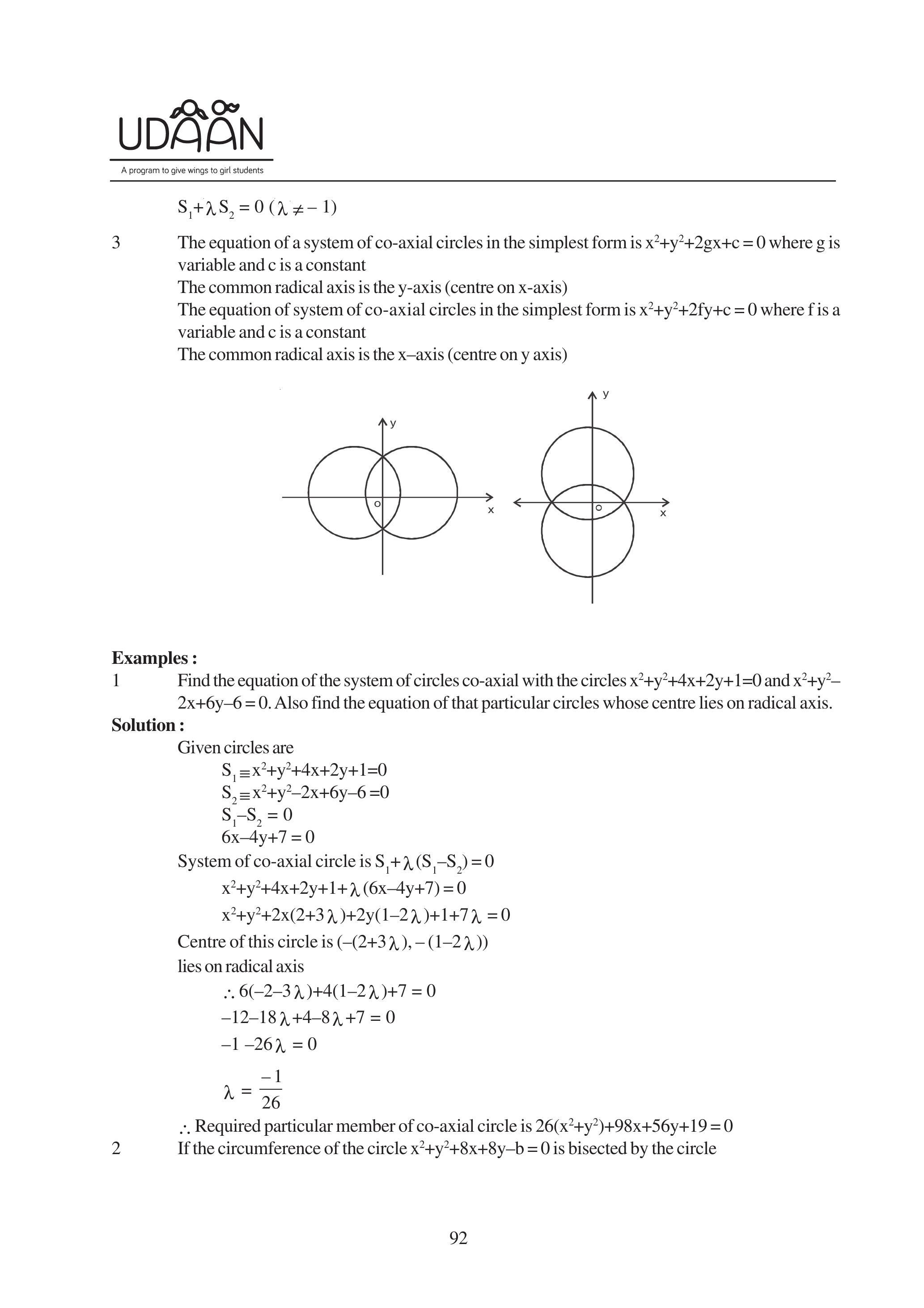 1. The equation of family of co-axial circles when the equation of radical axis and one circle are given