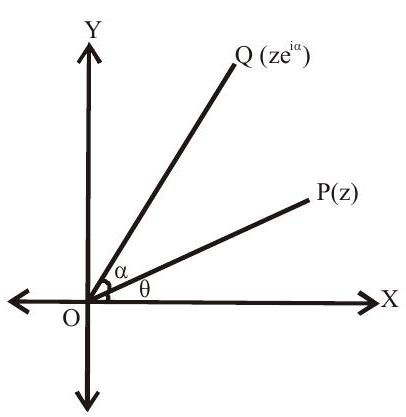 $\mathrm{ze}^{\mathrm{i} \alpha}$ is a complex number whose modulus is $\mathrm{r}$ and argument $\angle \mathrm{XOP}=\theta+\alpha$. To obtain $\mathrm{ze}^{\mathrm{i} \alpha}$, rotate $\mathrm{OP}$ through an angle $\alpha$ in anticlockwise direction.