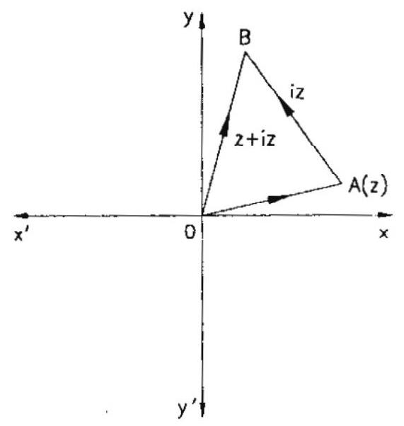 $1$ Multiplication of $\mathrm{z}$ with $\mathrm{i}$ rotates the vector $\mathrm{z}$ through a right angle in anticlockwise direction $\left(\because \mathrm{i}=1 \mathrm{e}^{\mathrm{i} \pi / 2}\right)$