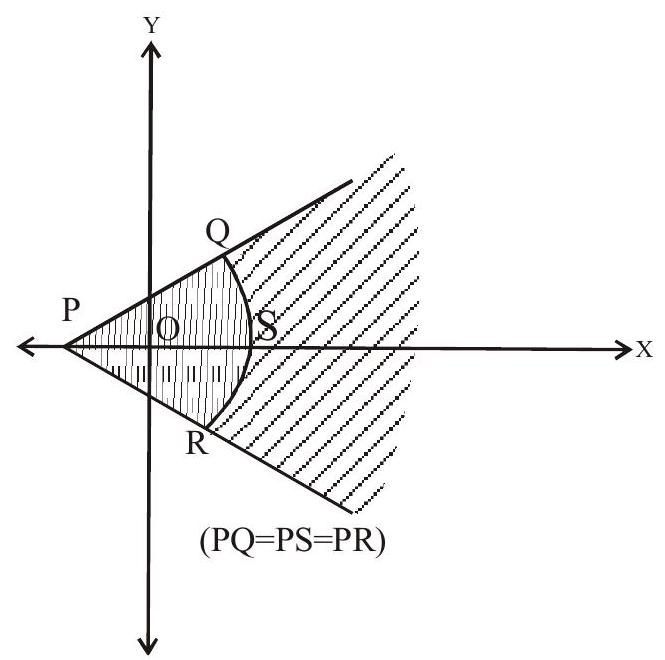 Answer: (b)6. The shaded region where $\mathrm{P}=(-1,0), \mathrm{Q}=(-1+\sqrt{2}, \sqrt{2}), \mathrm{R}=(-1+\sqrt{2},-\sqrt{2}), \mathrm{S}=(1,0)$ is represented by