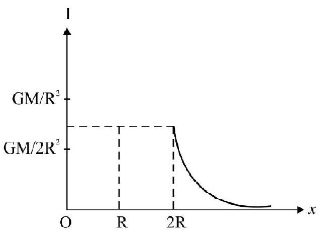 $$ \begin{align*} & \mathrm{dV} _{2}=-\frac{\mathrm{Gdm}}{\mathrm{r}}=-4 \pi \mathrm{G} \rho \mathrm{rdr} \\ \therefore \quad \mathrm{V} _{2} & =\int _{\mathrm{R} / 2}^{\mathrm{R}} \mathrm{dV} _{2}=-4 \pi \mathrm{G} \rho \int _{\mathrm{R} / 2}^{\mathrm{R}} \mathrm{rdr}=-4 \pi \mathrm{G} \rho\left[\frac{3 \mathrm{R}^{2}}{8}\right] \\ & =-\left(\frac{4 \pi}{3} \mathrm{R}^{3} \rho\right) \mathrm{G}\left(\frac{9 \mathrm{R}^{2}}{8 \mathrm{R}^{3}}\right)=-\frac{9}{8}\left(\frac{\mathrm{GM}}{\mathrm{R}}\right) \tag{3} \end{align*} $$