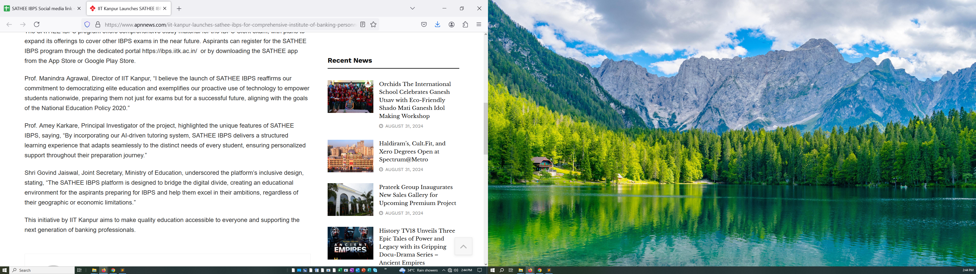 Prof. Manindra Agrawal, Director of IIT Kanpur, “I believe the launch of SATHEE IBPS reaffirms our commitment to democratizing elite education and exemplifies our proactive use of technology to empower students nationwide, preparing them not just for exams but for a successful future, aligning with the goals of the National Education Policy 2020.”