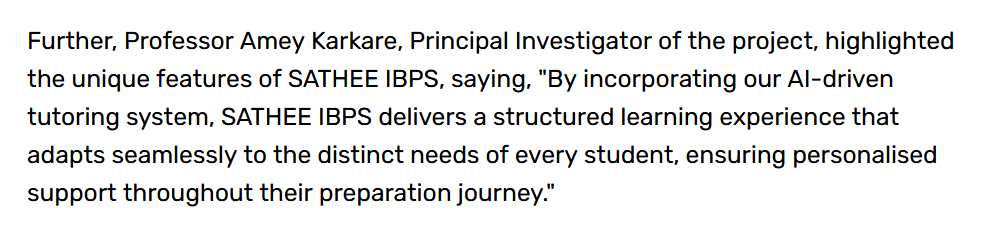 Professor Manindra Agrawal, Director of IIT Kanpur said, “I believe the launch of SATHEE IBPS reaffirms our commitment to democratising elite education and exemplifies our proactive use of technology to empower students nationwide, preparing them not just for exams but for a successful future, aligning with the goals of the National Education Policy 2020.” Further, Professor Amey Karkare, Principal Investigator of the project, highlighted the unique features of SATHEE IBPS, saying, “By incorporating our AI-driven tutoring system, SATHEE IBPS delivers a structured learning experience that adapts seamlessly to the distinct needs of every student, ensuring personalised support throughout their preparation journey.” Govind Jaiswal, Joint Secretary, Ministry of Education, underscored the platform’s inclusive design, stating, “The SATHEE IBPS platform is designed to bridge the digital divide, creating an educational environment for the aspirants preparing for IBPS and help them excel in their ambitions, regardless of their geographic or economic limitations.”