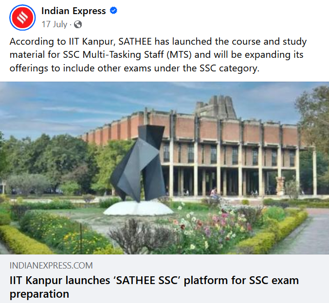 According to IIT Kanpur, SATHEE has launched the course and study material for SSC Multi-Tasking Staff (MTS) and will be expanding its offerings to include other exams under the SSC category. indianexpress.com IIT Kanpur launches ‘SATHEE SSC’ platform for SSC exam preparation