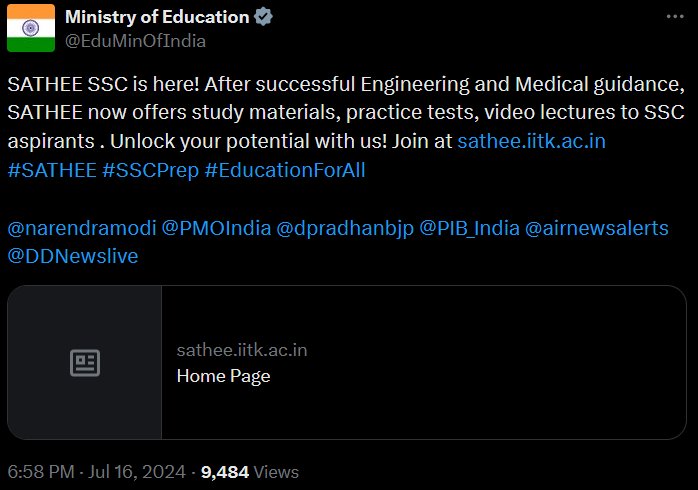SATHEE SSC is here! After successful Engineering and Medical guidance, SATHEE now offers study materials, practice tests, video lectures to SSC aspirants . Unlock your potential with us! Join at https://sathee.iitk.ac.in #SATHEE #SSCPrep #EducationForAll